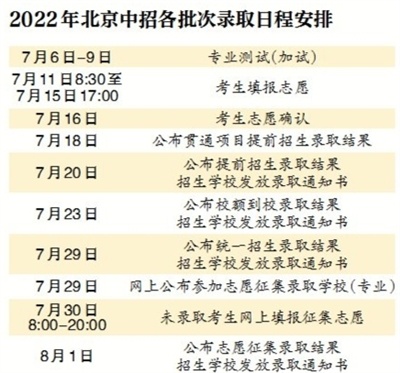 北京中招錄取7月17日啟動7月11日至15日填報誌願