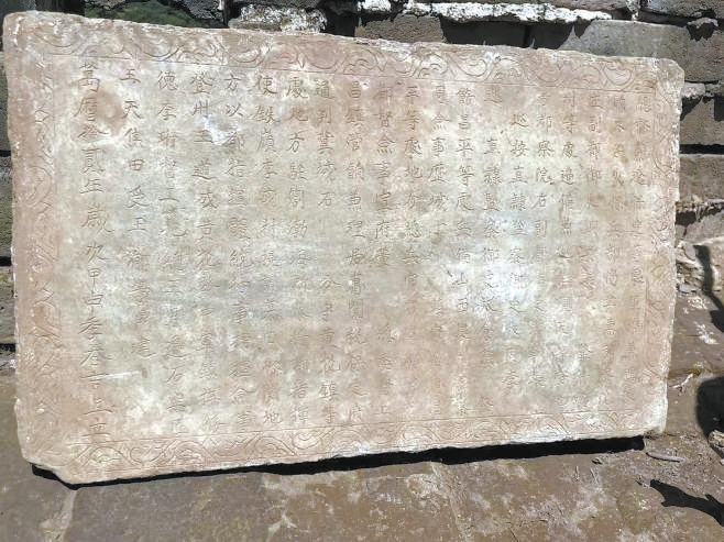 “發現一塊石碑,出土時碑文一麵向下,推測這塊石碑原來鑲嵌在北側(ce) 垛口牆內(nei) 側(ce) ,牆體(ti) 傾(qing) 斜倒塌後,石碑脫落。”項目考古負責人、北京考古研究院副研究員尚珩介紹。石碑為(wei) 青石材質,保存完整,邊框刻著纏枝卷草紋。因為(wei) 脫落時碑文麵朝下,因此碑文保存完好,字體(ti) 為(wei) 繁體(ti) 字,字跡娟秀,清晰可辨。