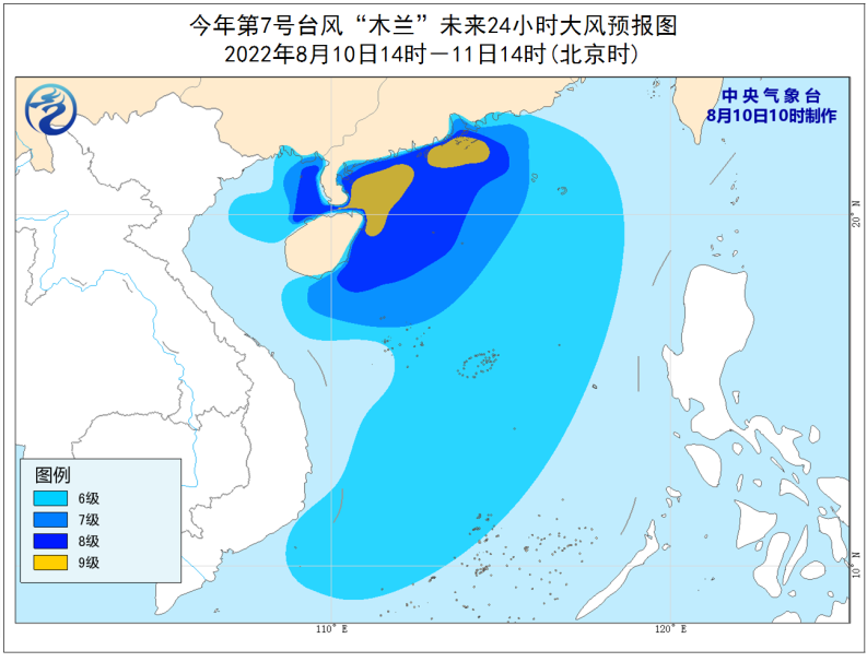 台風“木蘭(lan) ”大風預報圖(圖片來源:中央氣象台)