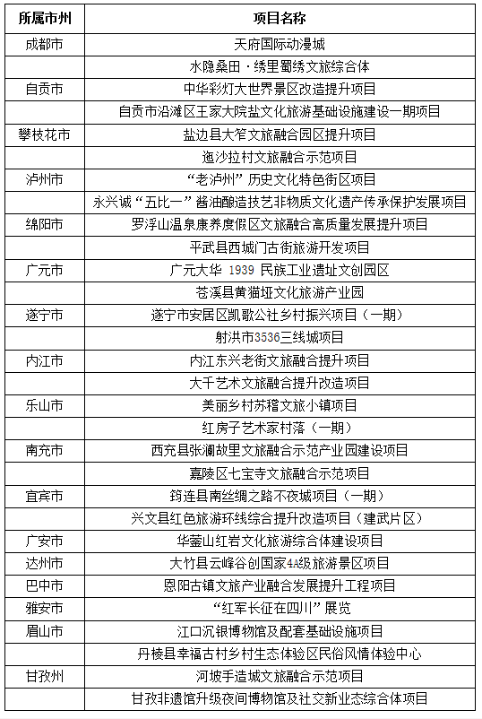 四川省公布2022年度文旅融合示範項目擬支持名單