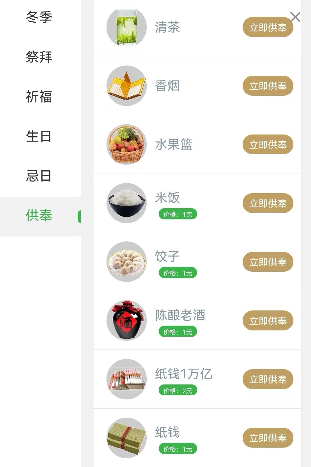 記者發現,用戶免費創建“網上紀念館”後,可以在紀念館進行“祭拜、祈福、獻花、供奉”等虛擬活動。而在推出的這些虛擬服務中,有些是免費的,有些則要收取費用。比如,在某平台送出一個(ge) “生日快樂(le) ”蛋糕,需要微信支付2元,送一疊“忌日紙錢”需要支付1元,一份“米飯”1元。