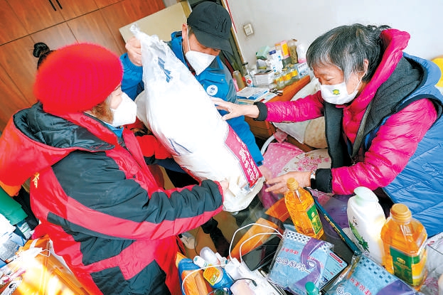 昨天,在龍潭街道幸福社區養(yang) 老服務驛站,“夕陽手拉手互助團”和“小棉襖愛老”的誌願者們(men) ,將愛心物資送到社區養(yang) 老家庭照護床位的老人手中。疫情下,老年群體(ti) 更加需要關(guan) 注與(yu) 關(guan) 愛,誌願者們(men) 以需求為(wei) 導向,精準服務老年人。 本報記者 方非攝