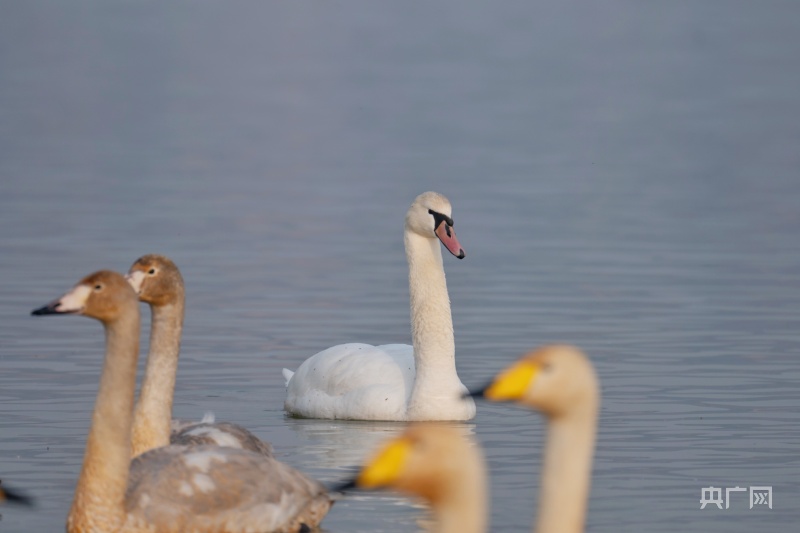 珍稀疣鼻天鵝現身黃河“天鵝湖”