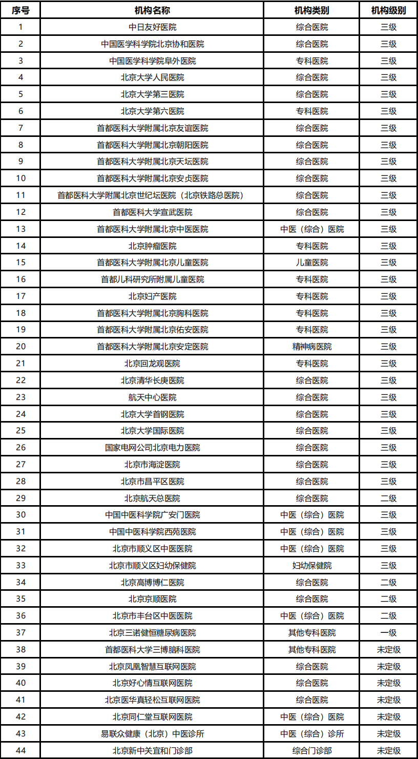 北京市公布互聯網醫院、開展互聯網診療服務醫療機構名單