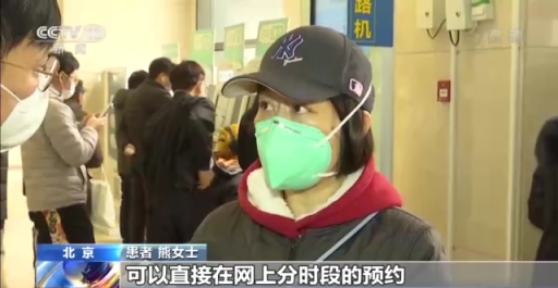 患者 熊女士:像我們(men) 這種患者可以在網上分時段的預約,預約完了按照時段來取號,基本在這個(ge) 時段看完了就可以走了,也減少了交叉感染。