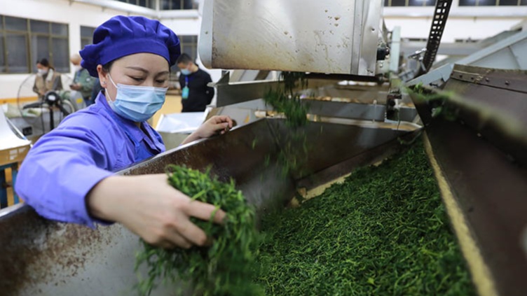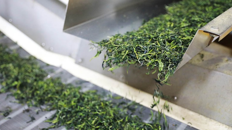 烘幹後的茶葉被傳(chuan) 送到下一道工序(央廣網發 孟凡盛 攝)