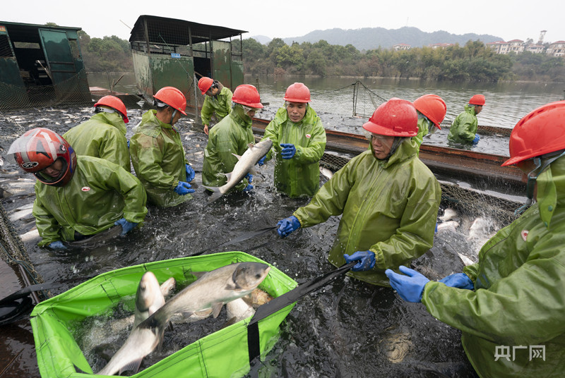 央廣網新餘(yu) 1月3日消息(記者胡斐)2023年1月2日,江西省新餘(yu) 市仙女湖巨網冬捕現場,漁民們(men) 進行新年冬捕作業(ye) ,呈現一派魚躍歡騰的豐(feng) 收景象。