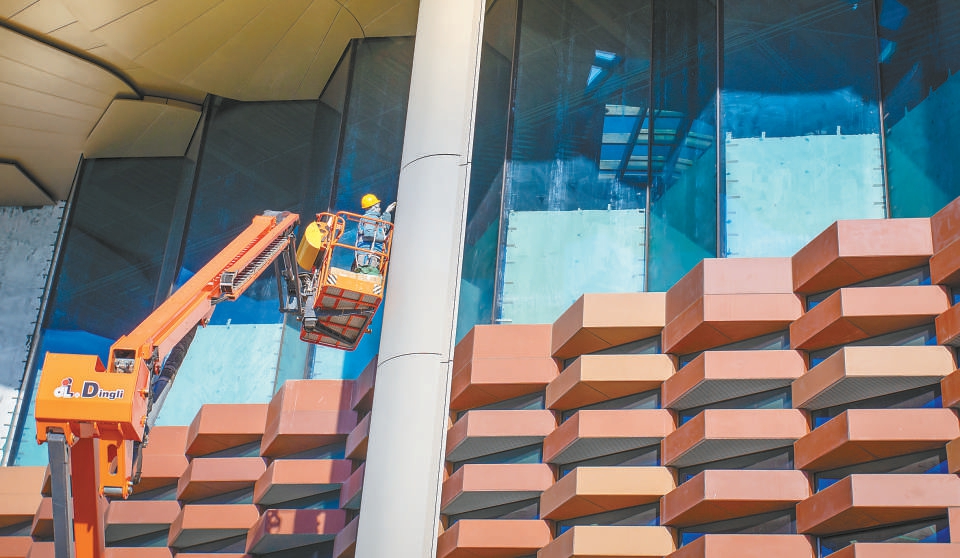 城市副中心圖書(shu) 館項目周邊,首都博物館東(dong) 館、大劇院項目同樣按下了建設“加速鍵”。僅(jin) 首都博物館東(dong) 館項目,目前就有600餘(yu) 人堅守崗位,在確保疫情防控安全的前提下盡最大努力確保工程進度。目前,首都博物館東(dong) 館屋麵幕牆安裝基本完成,正在進行室內(nei) 吊頂鋁拉網收尾,室內(nei) 普通裝修完成60%以上,精裝工程完成45%以上,機電安裝工程完成75%以上。