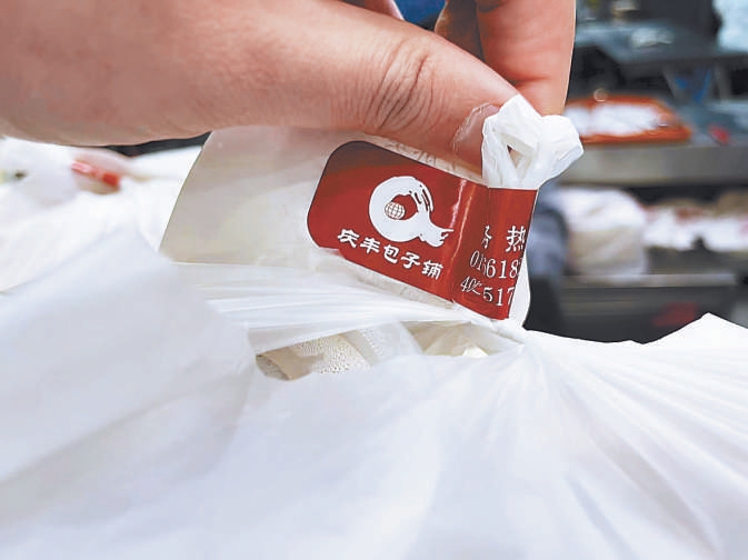 傍晚6時左右,廣渠門內(nei) 地鐵口附近的慶豐(feng) 包子鋪訂單漸漸多了起來。記者現場看到,服務員把蒸好的包子和其它菜品裝進外賣盒後,馬上用專(zhuan) 屬的外賣袋和封簽將食品“封死”。一眼望去,桌上七八份外賣都貼著帶有“慶豐(feng) 包子鋪”標誌的專(zhuan) 屬紅色封簽。