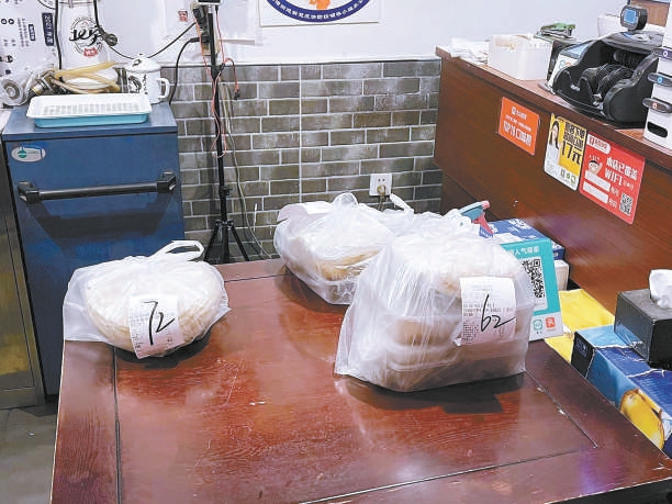 但在龍潭街道一家春餅店,記者現場看到,春餅外賣隻是被服務員套上塑料袋並簡單係了個(ge) 結,放到門口的桌子上等外賣員來取,沒有貼外賣封簽,更沒有有效的密封措施。