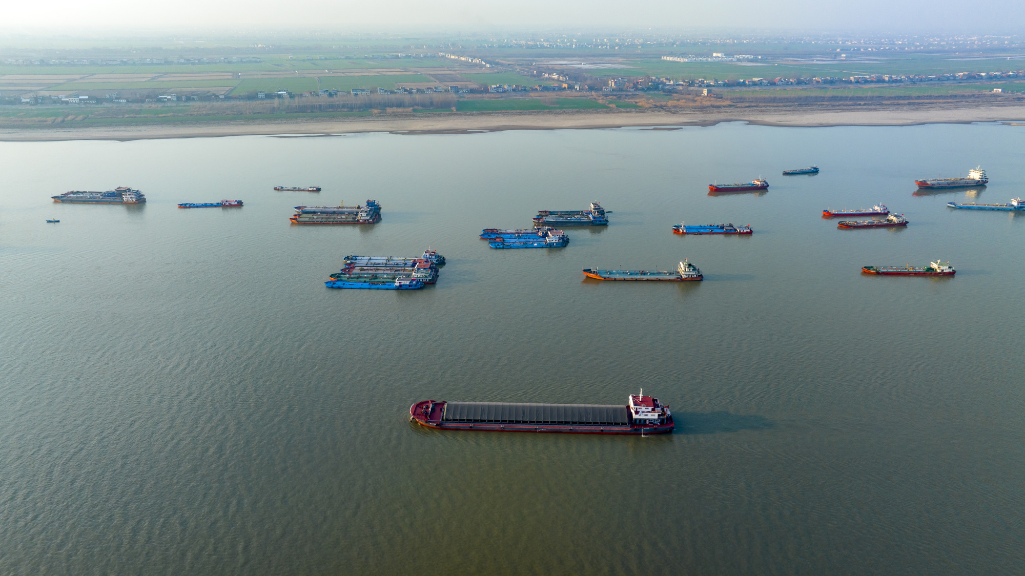 長江航道江西省九江市湖口縣水域船舶往來穿梭,水運一派繁忙(央廣網發 餘(yu) 傑 攝)