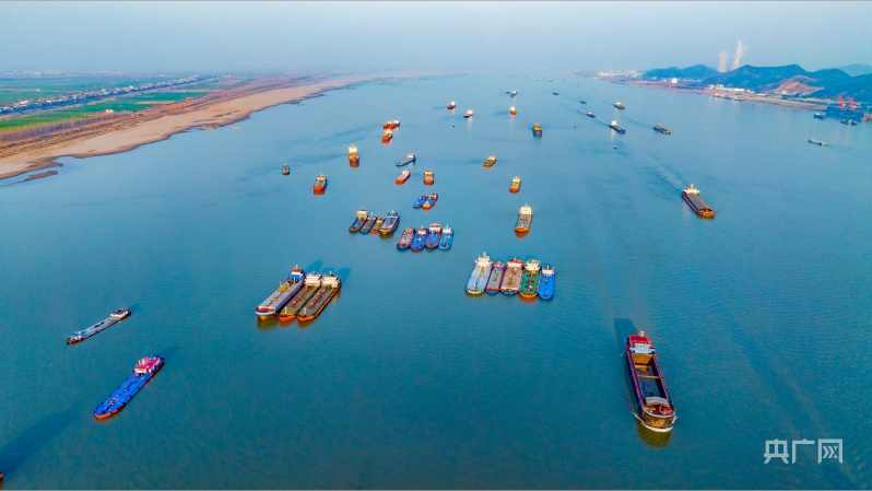 長江航道江西省九江市湖口縣水域船舶往來穿梭,水運一派繁忙(央廣網發 張玉 攝)