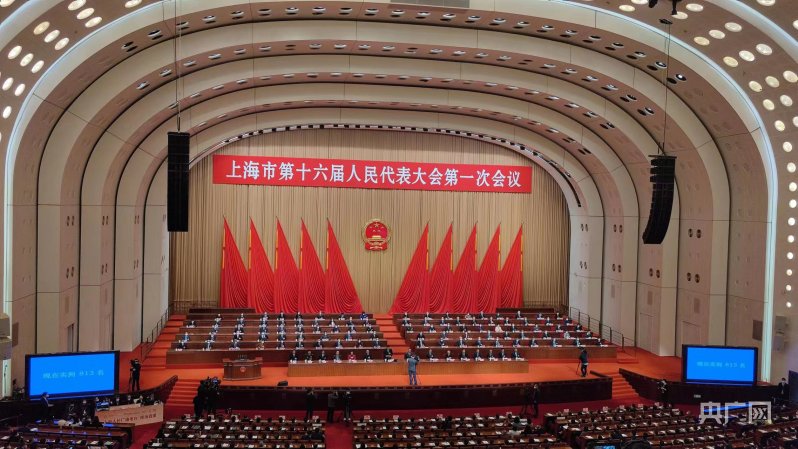 上海市第十六屆人大一次會(hui) 議1月11日上午在世博中心開幕(央廣網記者 林馥榆 攝)