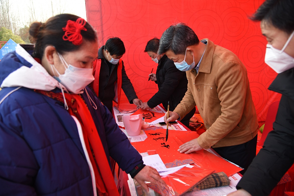 台上歡歌載舞,台下人頭攢動。配鑰匙、法律援助谘詢、醫生義(yi) 診、眼鏡修理等服務,吸引了不少村民。書(shu) 法家們(men) 現場書(shu) 寫(xie) 幾百幅福字,將新年的美好祝願贈予村民。
