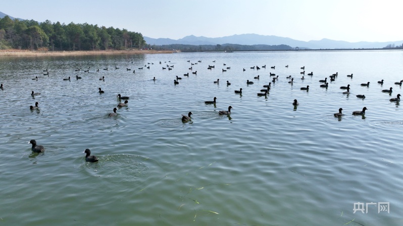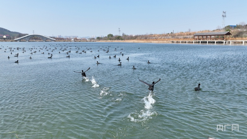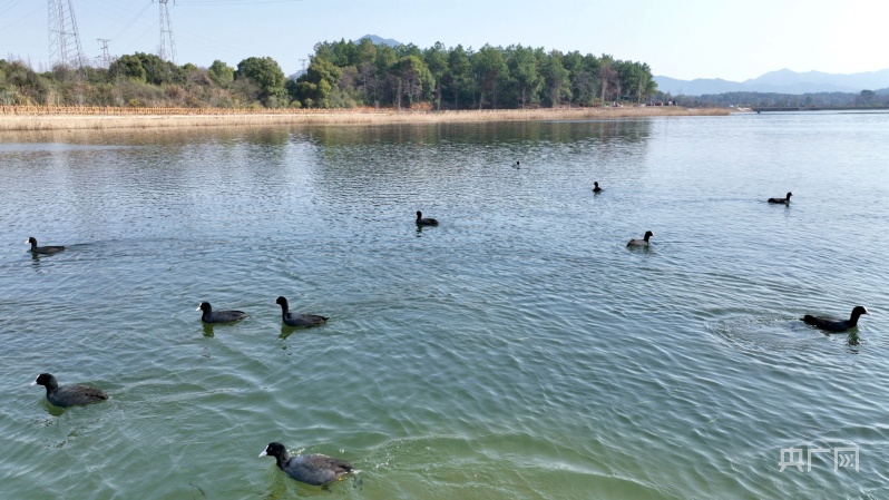 江西分宜:數百隻白骨頂雞“做客”濕地公園