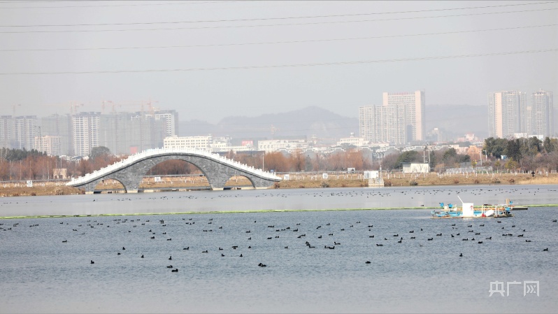 分宜縣介溪濕地公園雲(yun) 集數百隻白骨頂雞(央廣網發 袁建兵 攝)