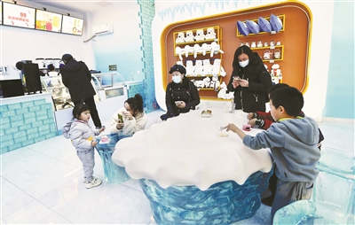 在觀摩體(ti) 驗區,遊客可以觀看有趣的製冰過程。遊客熱衷在拍照打卡區和白熊雕塑合影,留下一段美好的記憶。在周邊商品展示區,各類周邊商品陳列於(yu) 此,供遊客朋友挑選采購。