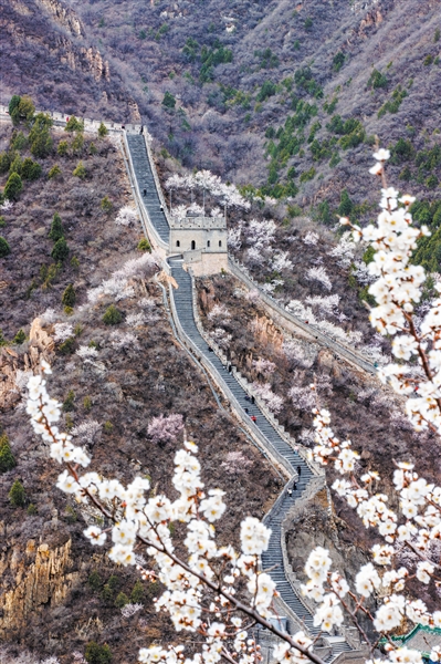 3月24日,居庸關(guan) 長城與(yu) 山花爛漫同框。新京報記者 王子誠 攝