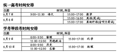 學考等級考科目為(wei) 思想政治、曆史、地理、物理、化學、生物6門,由考生自主選擇3門參加考試,考試時間為(wei) 6月9日至10日。