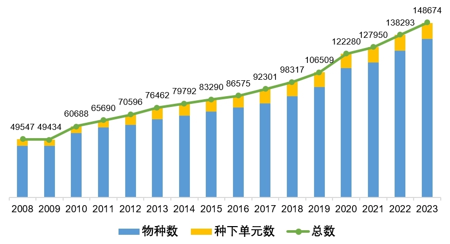 《中國生物物種名錄》曆年數據量變化圖 圖片來源:中科院生物多樣性委員會(hui) 微信公眾(zhong) 號
