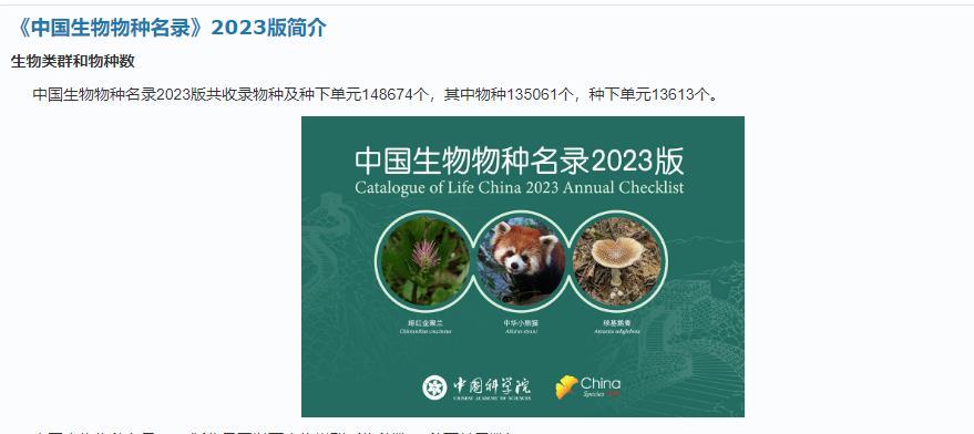 5月22日“國際生物多樣性日”當天,中科院生物多樣性委員會(hui) 在線發布了《中國生物物種名錄》2023版。據“物種2000中國節點”官網介紹,較2022版,2023版名錄新增10027個(ge) 物種和354個(ge) 種下單元。
