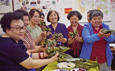 6月19日下午,什刹海街道端午節民俗活動在北京市西城區什刹海街道華方居家養(yang) 老配餐中心舉(ju) 行,30多位老人和民俗專(zhuan) 家一起包粽子。新京報記者 李木易 攝