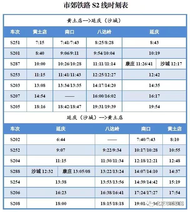 央視網消息:據北京市郊鐵路微信公眾(zhong) 號消息,為(wei) 滿足“端午”假日期間市民出行需求,6月21日至6月22日期間,S2線每日開行7對列車。列車開行時刻如下圖所示: