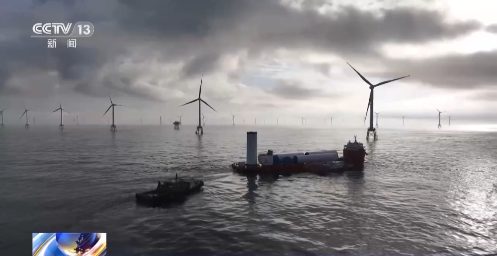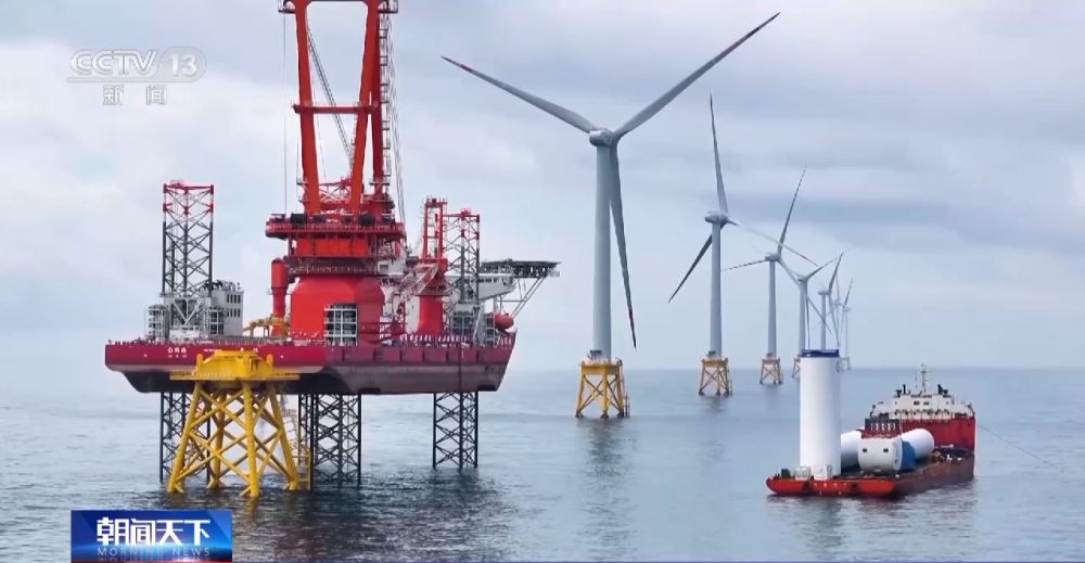 三峽集團風電安裝平台“白鶴灘”號船長 李剛:這種支腿船有四個(ge) 樁腿,這個(ge) 樁腿會(hui) 深入泥底,到最後會(hui) 把整個(ge) 平台抬起來,不受風浪的影響,所以在吊裝的時候就更加平穩,更加有利於(yu) 現場作業(ye) 。