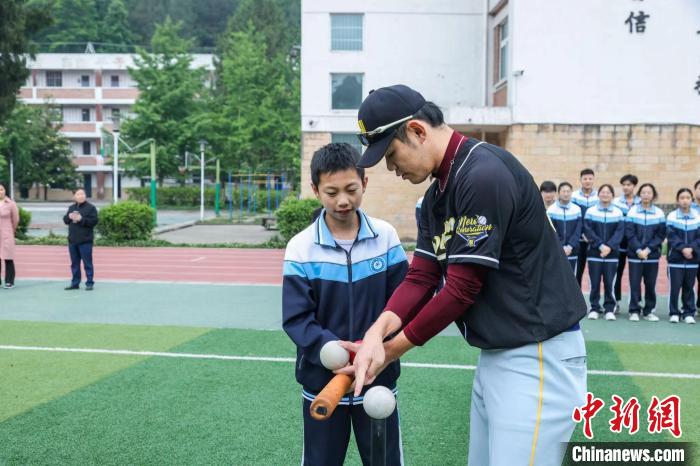 今年4月,台青宋奇軒在北京合夥(huo) 創辦“新世代棒球俱樂(le) 部”。圖為(wei) 宋奇軒在四川省青川縣為(wei) 當地學校開展公益棒球課項目。(受訪者供圖)