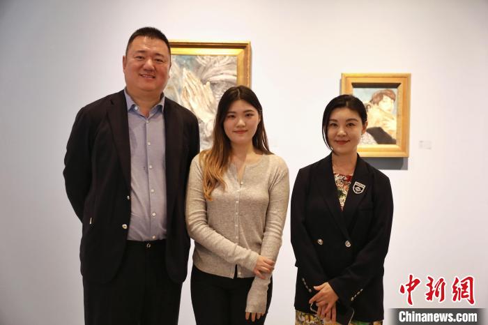 6月底,在北京舉(ju) 辦個(ge) 人藝術展的台灣青年於(yu) 飛(中)與(yu) 父母。中新社記者 李雪峰 攝