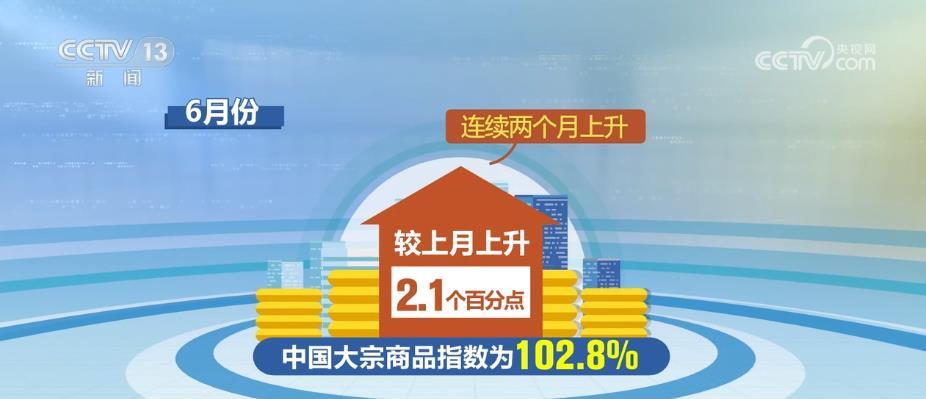 6月份,中國大宗商品指數為(wei) 102.8%,較上月上升2.1個(ge) 百分點,連續兩(liang) 個(ge) 月上升。