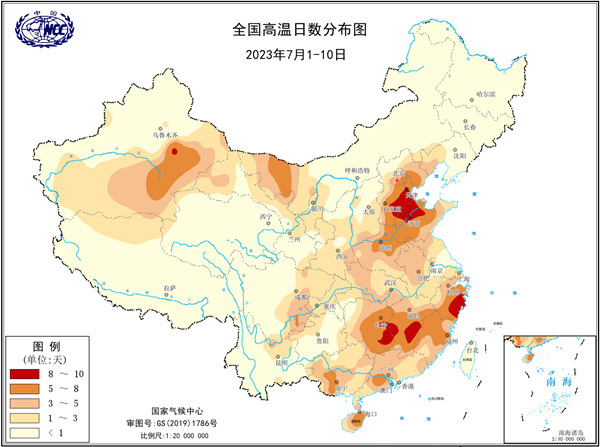 中國天氣網訊 今年7月上旬,我國高溫愈演愈烈,全國平均氣溫達到22.88℃,有超過400個(ge) 國家級站點經曆了1961年以來最熱的7月上旬。華北、黃淮多地高溫日數達到5~8天,其中河北東(dong) 部、山東(dong) 西北部一些地方出現了8~9天高溫。南方高溫進入7月也開始發力,江南不少地方高溫日數達到了5天以上,湖南、江西、浙江、福建等一些地方甚至高溫全勤。