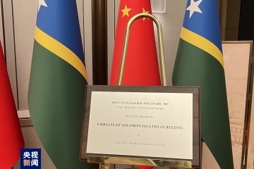 7月11日中午,所羅門群島駐華使館在北京舉(ju) 行開館儀(yi) 式。正在中國訪問的所羅門群島總理梅納西·索加瓦雷出席儀(yi) 式。