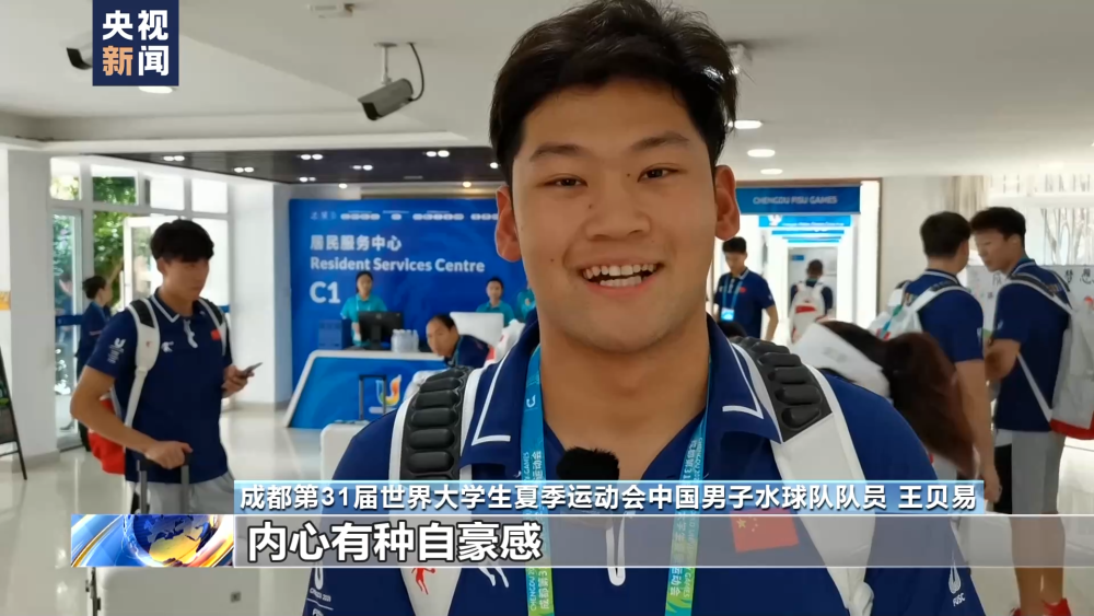 成都第31屆世界大學生夏季運動會(hui) 中國男子水球隊隊員 王貝易:外麵已經看到我們(men) 中國隊的國旗了,內(nei) 心有種自豪感。