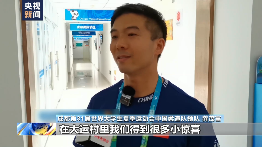 成都第31屆世界大學生夏季運動會(hui) 中國柔道隊領隊 龔茂富:在大運村裏,我們(men) 得到很多小驚喜,我們(men) 的隊員都十分開心。