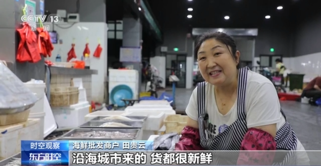 海鮮批發商戶 田貴雲(yun) :咱那貨都是從(cong) 日照、青島、連雲(yun) 港等沿海城市來的,貨都很新鮮,價(jia) 格也很便宜,老百姓都很喜歡。