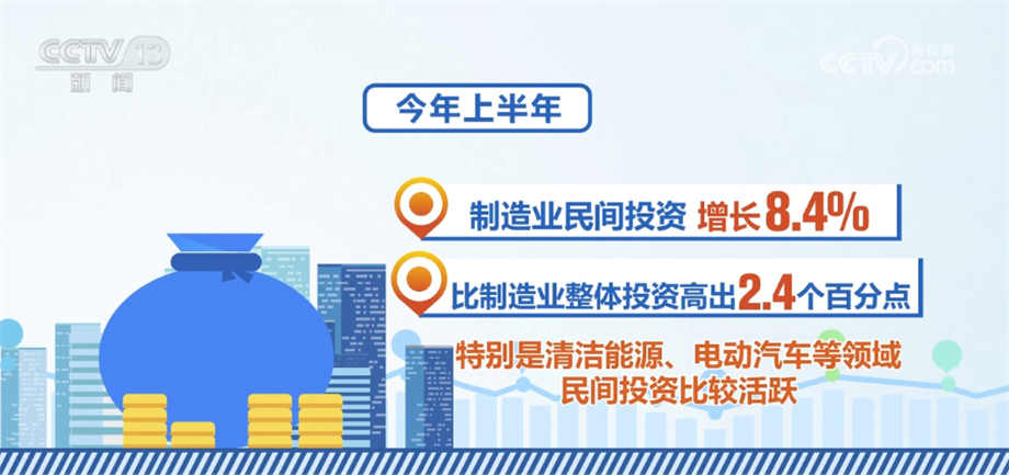 國家發展改革委相關(guan) 負責人表示,當前,民間投資結構持續優(you) 化,一些領域民間投資顯現了不少亮點。今年上半年,除房地產(chan) 開發以外的民間投資同比增長9.4%,增速比全部投資高5.6個(ge) 百分點;製造業(ye) 民間投資增長8.4%,比製造業(ye) 整體(ti) 投資高出2.4個(ge) 百分點,特別是清潔能源、電動汽車等領域民間投資比較活躍;基礎設施民間投資增長15.6%,比基礎設施整體(ti) 投資高出8.4個(ge) 百分點,呈現出較強的投資信心和投資動力。