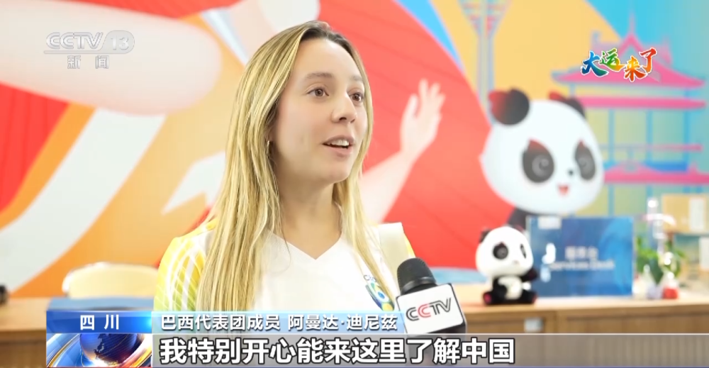 巴西代表團成員 阿曼達·迪尼茲(zi) :中國真是個(ge) 漂亮的國家,我特別開心能來這裏了解中國、感受文化,認識大家。這裏的食物很美味,城市也很漂亮。成都讓我印象太深刻了。