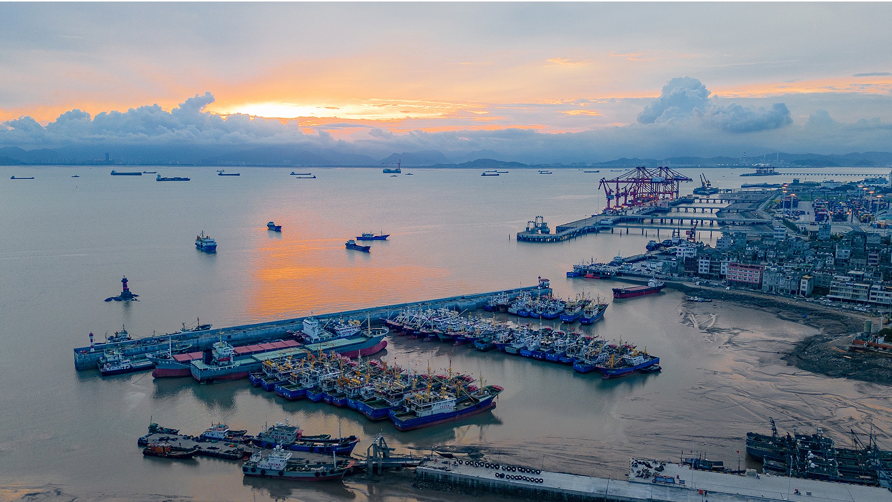 2023年7月24日,浙江台州,避風漁船停靠在玉環市大麥嶼二級漁港。