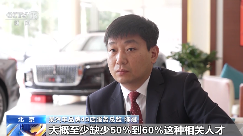 某汽車品牌4S店服務總監 陳斌:目前的缺口,從(cong) 我們(men) 店端來講,大概至少缺50%到60%這種相關(guan) 人才。