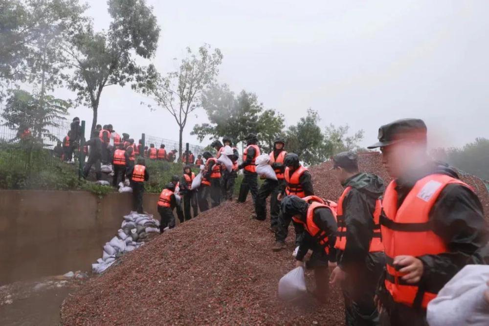 官兵們(men) 星夜出動,於(yu) 淩晨2時許抵近房山琉璃河鎮。大雨傾(qing) 盆,武警官兵揮動鐵鏟,借助推土機、裝載機等裝備,在河床低窪地域迅速壘築堤壩,防止河水暴漲,出現漫灌危險。