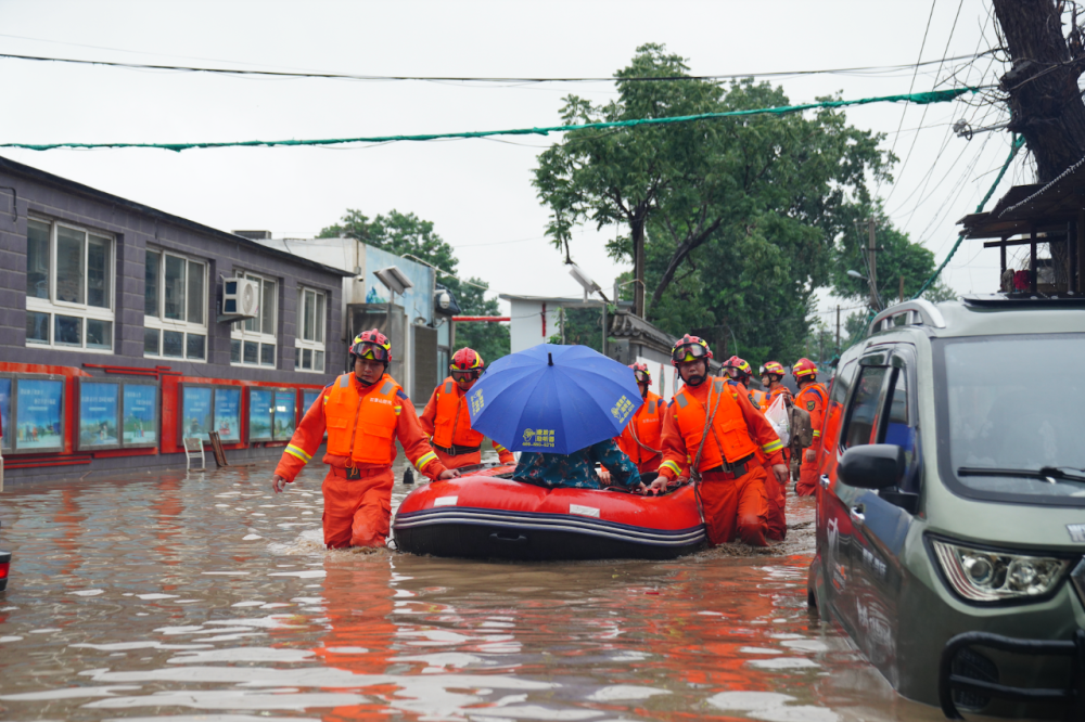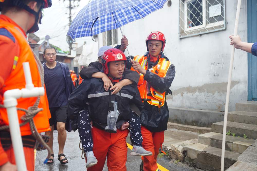 對於(yu) 行動不便的老人和孩子,消防員或直接背起,或為(wei) 其撐傘(san) 擋雨,避免居民受傷(shang) 。此外,北京急救中心也派出醫護人員到現場,及時提供醫療服務。