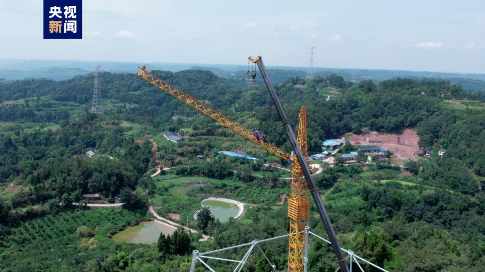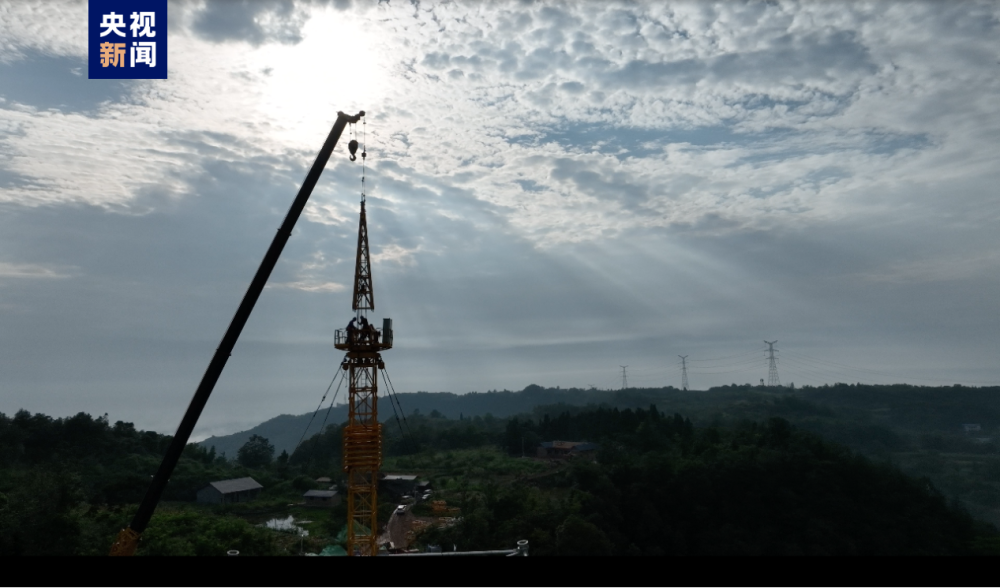 8月6日14時,在重慶市潼南區新勝鎮,川渝特高壓交流工程開展全線首基鐵塔組立試點,標誌著該工程全麵進入鐵塔組立階段。