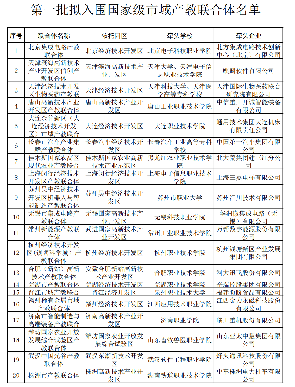第一批擬入圍國家級市域產(chan) 教聯合體(ti) 名單(教育部官方網站截圖,央廣網發)
