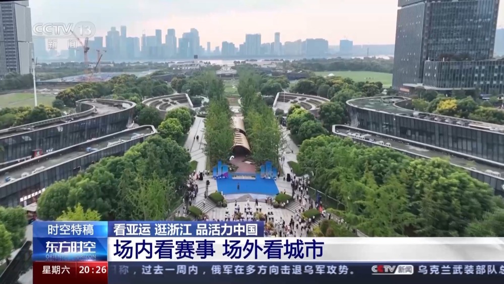 總台記者 孫銳:這裏是杭州市蕭山區的錢江世紀公園,每到傍晚這裏就會(hui) 格外熱鬧,大家圍著亞(ya) 運觀賽空間看比賽,或到附近的亞(ya) 洲花卉主題展園賞花;又或者到錢塘江邊的綠道上吹吹江風,感受秋意。