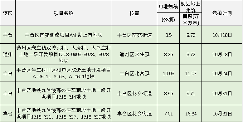 根據北京市規自委網站顯示,10月份北京還將有5宗宅地入市,其中豐(feng) 台4宗、通州1宗。