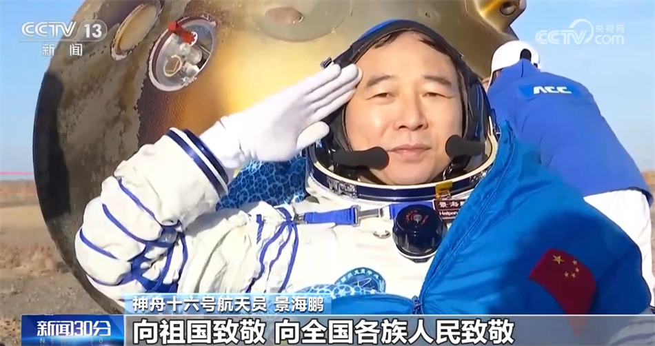8時11分,返回艙成功著陸,擔負搜救回收任務的搜救分隊及時發現目標並抵達著陸現場。9時10分,神舟十六號航天員景海鵬、朱楊柱、桂海潮全部安全順利出艙,健康狀態良好。