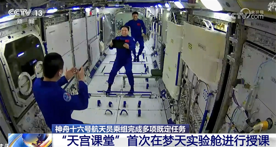 9月21日15時48分,“天宮課堂”第四課在中國空間站開講,這是首次在夢天實驗艙內(nei) 進行授課。神舟十六號航天員第一次帶領大家巡遊夢天實驗艙,介紹了各類實驗機櫃。在48分鍾的授課中,三名航天員在軌演示了球形火焰實驗,這是首次在空間站開放空間內(nei) 進行燃燒實驗的展示,以及使用水球進行了奇妙“乒乓球”實驗,還有經典物理學動量守恒實驗和從(cong) 神十授課就一直伴隨“天宮課堂”的陀螺實驗,最後航天員們(men) 還和地麵課堂的同學們(men) 進行了互動交流。