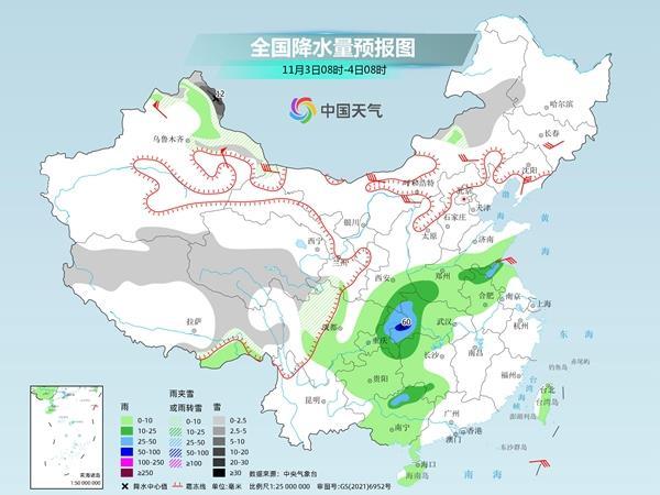 後天,內(nei) 蒙古東(dong) 部、新疆北部、西藏北部和東(dong) 部、青海中南部、川西高原北部等地部分地區有小到中雪,其中,新疆阿勒泰地區等地部分地區有大到暴雪;陝西南部、四川東(dong) 部、重慶中東(dong) 部、湖北西部、河南西部、安徽北部、江蘇北部、廣西北部等地部分地區有中到大雨,其中,湖北西部、重慶東(dong) 北部等地部局地有暴雨。