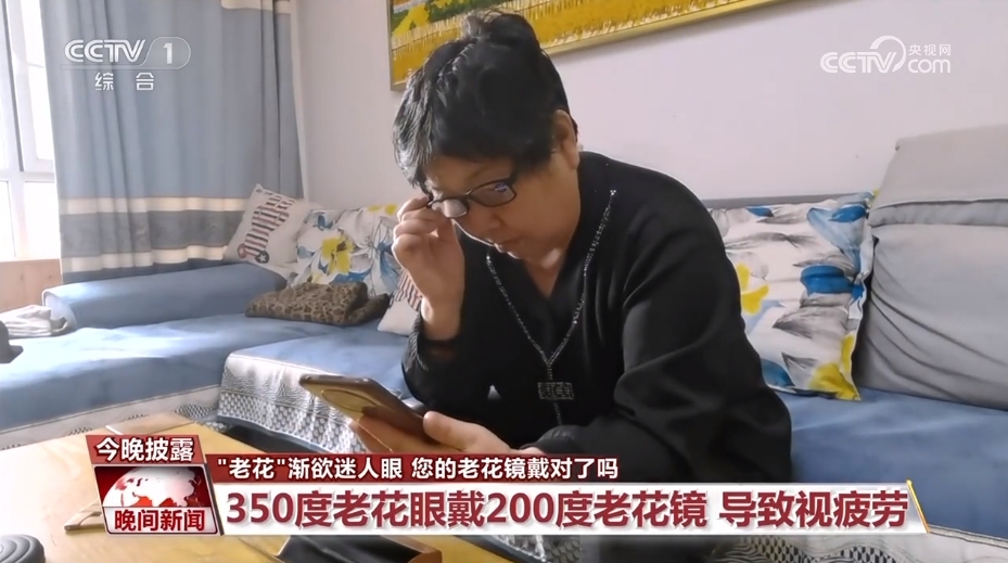 北京中醫藥大學東(dong) 方醫院眼科主任醫師 宋哲:300多度,那你說她帶著那個(ge) 200度的老花鏡,能適應她眼睛嗎,肯定適應不了,那眼睛肯定疲勞,困,累,不舒服。